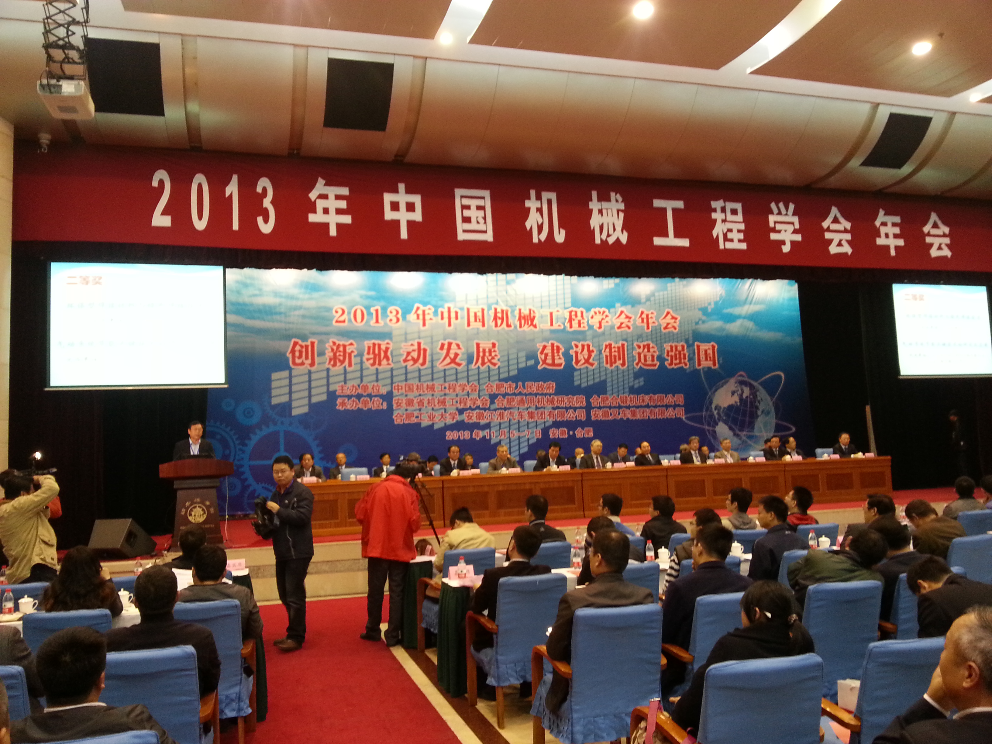 11月5-6日,2013年中國機械工程學會年會在合肥稻香樓賓館召開。全國人大常委會原副委員長、中國機械工程學會榮譽理事長路甬祥院士,中國工程院院長、中國機械工程學會理事長周濟院士等出席會議并作大會報告,我院李新亞院長作為學會副理事長出席會議并在大會上宣讀了“第三屆綠色制造科學技術進步獎”公告。我院直屬單位多名領導和專家參加了此次年會。
