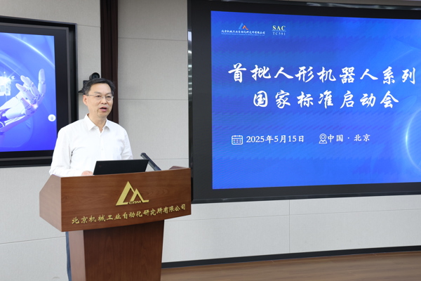 近期,由全國機器人標(biāo)準(zhǔn)化技術(shù)委員會(SAC/TC591)主辦的首批人形機器人系列國家標(biāo)準(zhǔn)啟動會在北京機械工業(yè)自動化研究所有限公司成功召開,共同聚焦人形機器人作業(yè)操作技術(shù)要求國家標(biāo)準(zhǔn)進(jìn)行廣泛深入交流研討。國家市場監(jiān)督管理總局標(biāo)準(zhǔn)技術(shù)司處長劉大山,國家標(biāo)準(zhǔn)化管理委員會原副主任殷明漢,工業(yè)和信息化部裝備工業(yè)一司主管科員祁航,雁棲湖基礎(chǔ)制造技術(shù)研究院(北京)有限公司黨委書記、董事長、總經(jīng)理肖承翔,全國機器人標(biāo)準(zhǔn)化技術(shù)委員會秘書長、北自所總經(jīng)理李金村等領(lǐng)導(dǎo)出席會議,來自宇樹科技、北京市人形機器人創(chuàng)新中心、北京航空航天大學(xué)等知名企業(yè)、高校及科研院所的專家參加會議。